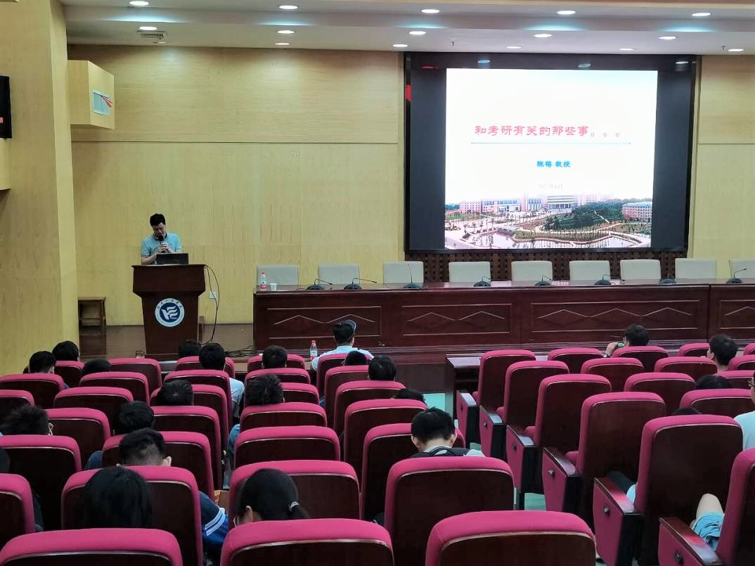 陈桥教授从近几年考研总体形式出发,结合自己考研的经验,从建立信心、坚定目标、选择学校、搜集信息等考研前期准备工作进行了形象生动的介绍。他总结以往成功考研学生的经验,提醒与会学生要做好考研复习时间规划,平时注重心理状态调节,并细致地分课程讲解了复习资料准备、复习时间安排和复习方法运用,对如何在考研冲刺期提升复习效率进行了有针对性的讲解。最后,陈桥教授与参会同学进行了热烈的交流,就跨专业考研、考研复试等问题进行了耐心的讲解。