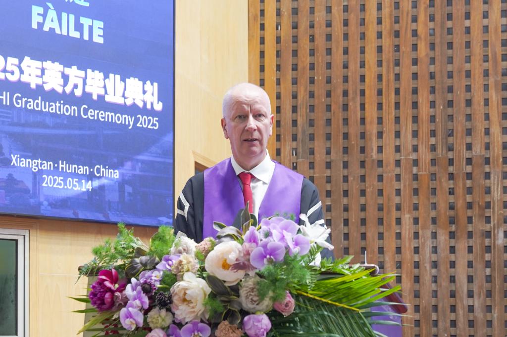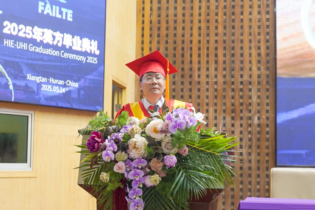 “我谨代表太阳成,向远道而来的英方伙伴、无私奉献的教育工作者、倾力支持的家长们,以及2025届全体毕业生,致以最热烈的祝贺与最衷心的感谢!”党委委员、副校长罗毅平致辞。他勉励毕业生们以湖湘文化“敢为人先”为舟,以UHI“创新基因”为帆,在民族复兴的征程中镌刻属于中英合作学子的璀璨荣光!