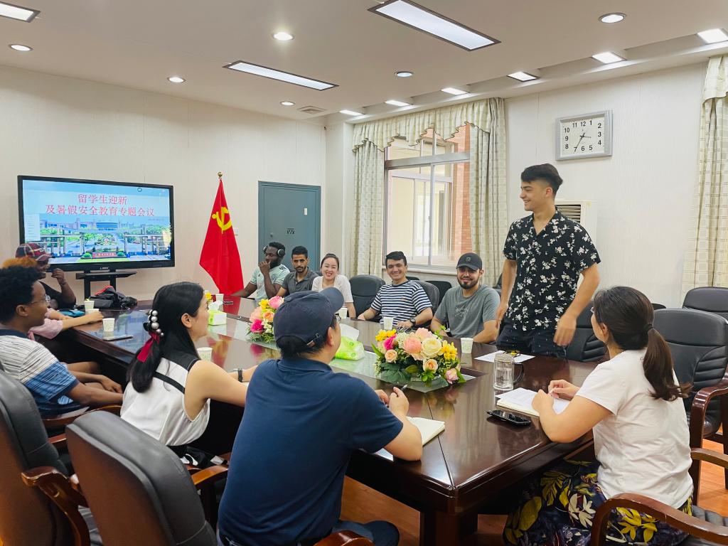 7月14日下午,tyc7111cc太阳成集团外籍留学生迎新暨安全教育会议在E105召开。副院长曹丽英和留学生办全体老师参加。
