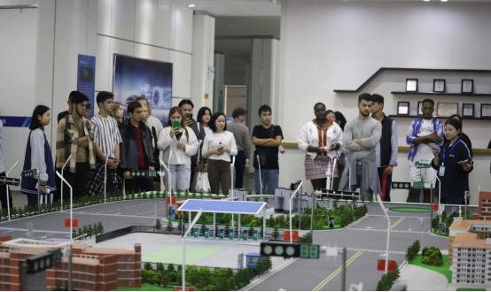 在湖南机电职业技术学院,国际交流处的老师们带领国际学生,参观了机器人中心、智能网联汽车中心等多个实习实训基地和融媒体中心。“这看起来太酷啦!”湖南机电职业技术学院现代化的实训设备为专业课程插上了科技的翅膀,焕发出了新的活力,产教融合的人才培养模式以及创客教育特色令人赞叹。